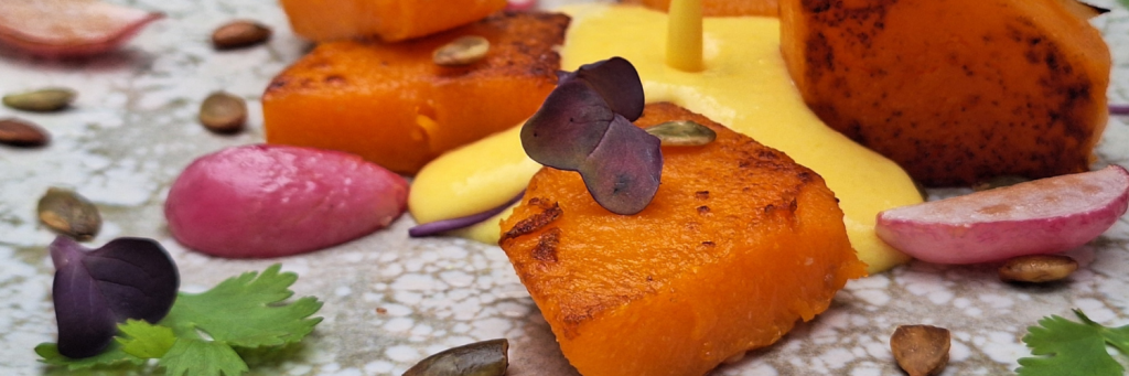 Víctor comenta que la parte práctica fue más sencilla de lo esperado. ‘La operativa en cocina se integró rápido. Cuando el equipo está motivado y las ideas claras, todo fluye. Hoy en día es una partida más dentro del buffet del hotel’, asegura. De hecho, han conseguido que muchos de sus platos veganos gusten incluso a quienes no siguen esta dieta. Uno de los más populares es una coliflor gratinada con miso, pesto de tomate seco, anacardos e higos, que ha sorprendido gratamente por su sabor y originalidad. Otro éxito rotundo es la calabaza asada con crema thai de curry, jengibre y coco, que cada vez que se ofrece en el menú, desaparece de los platos.