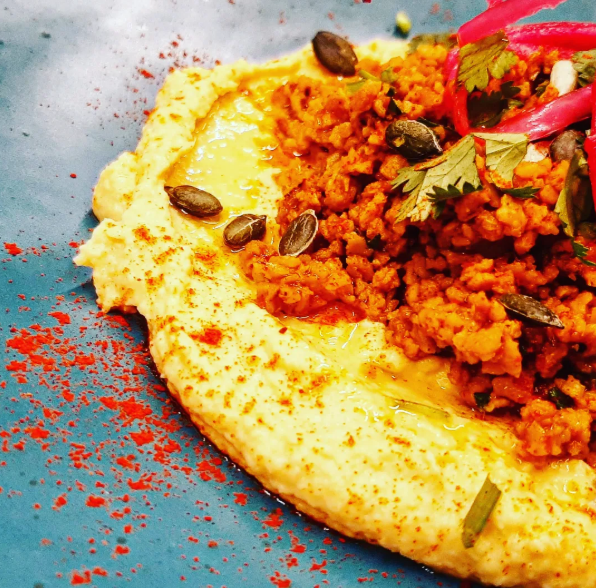 Es un variante del hummus que se sirve tradicionalmente como aperitivo.