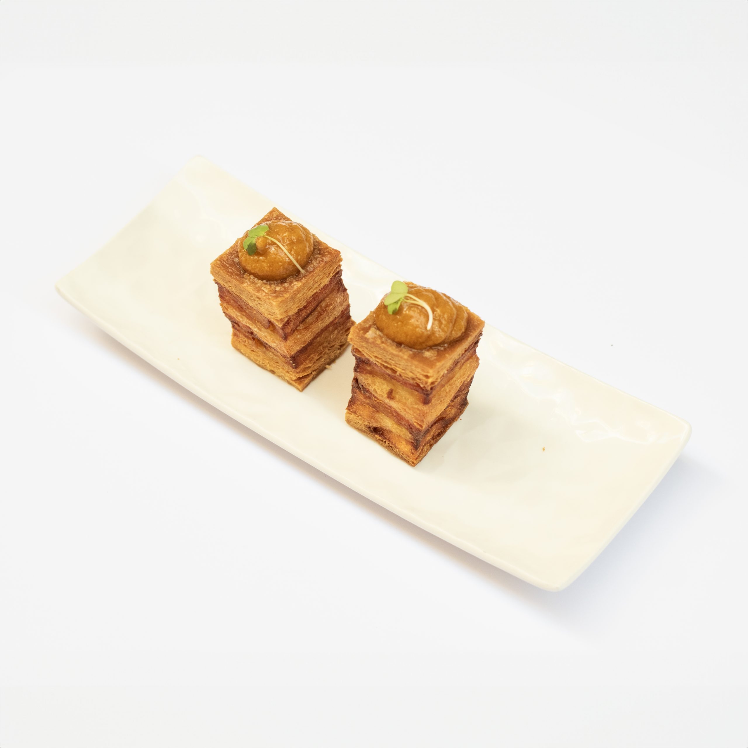 Patata y boniato rojo crujientes hojaldrados con salsa brava casera